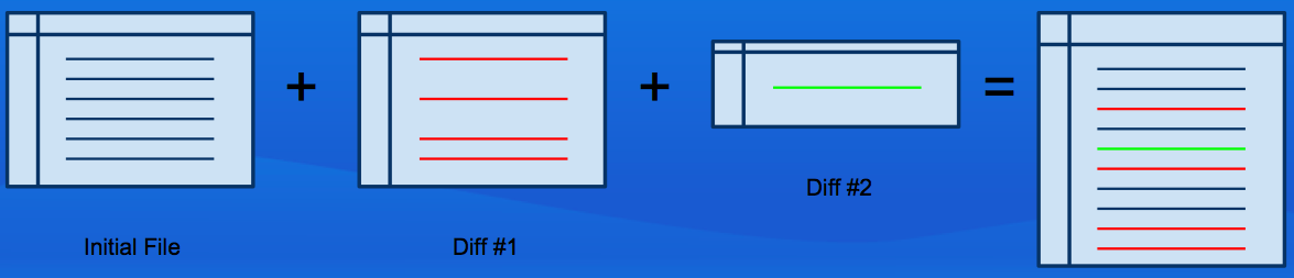 Given a file, and a complete set of diffs between one state and another, any intermediate state for which there is a diff can be reconstructed.